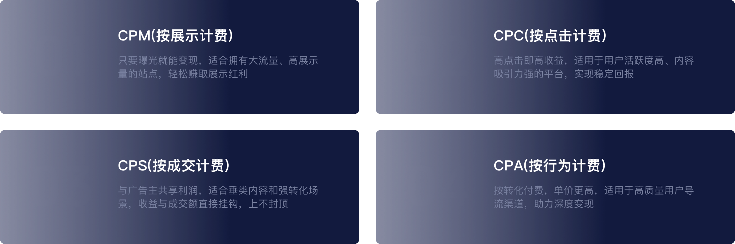 CPC/CPM/CPS/CPA,按需结算更自由